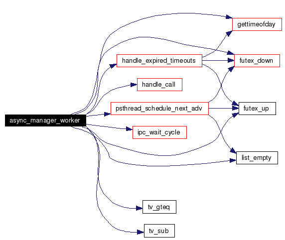 Endless loop dispatching incoming calls and answers Definition at line 508 of file async.c. References async_futex, awaiter_t::expires, futex_down(), futex_up(), gettimeofday(), handle_call(), handle_expired_timeouts(), ipc_wait_cycle(), list_empty(), list_get_instance, NULL, PS_FROM_MANAGER, psthread_schedule_next_adv(), tv_gteq(), and tv_sub(). Referenced by async_manager_thread(). Here is the call graph for this function: ![]() |