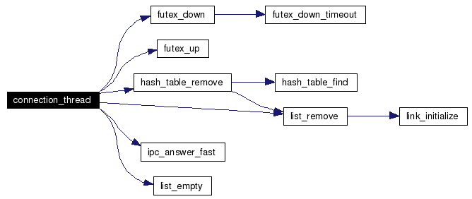 Definition at line 367 of file async.c. References async_futex, connection_t::call, msg_t::callid, connection_t::callid, connection_t::close_callid, conn_hash_table, connection_t::cthread, futex_down(), futex_up(), hash_table_remove(), connection_t::in_phone_hash, ipc_answer_fast(), msg_t::link, list_empty(), list_get_instance, list_remove(), connection_t::msg_queue, link::next, and PS_connection. Referenced by async_new_connection(). Here is the call graph for this function: ![]() |