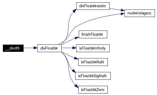 Definition at line 197 of file div.c. References float64::binary, divFloat64estim(), float64::exp, finishFloat64(), FLOAT64_BIAS, FLOAT64_FRACTION_SIZE, FLOAT64_HIDDEN_BIT_MASK, FLOAT64_NAN, float64::fraction, isFloat64Infinity(), isFloat64NaN(), isFloat64SigNaN(), isFloat64Zero(), mul64integers(), and float64::sign. Referenced by __divdf3(). Here is the call graph for this function: ![]() |