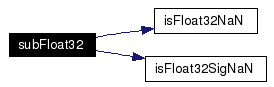 Subtract two float32 numbers with same signs Definition at line 41 of file sub.c. References float32::binary, float32::exp, float32::f, FLOAT32_FRACTION_SIZE, FLOAT32_HIDDEN_BIT_MASK, FLOAT32_MAX_EXPONENT, FLOAT32_NAN, float32::fraction, isFloat32NaN(), isFloat32SigNaN(), and float32::sign. Referenced by __addsf3(), and __subsf3(). Here is the call graph for this function: ![]() |